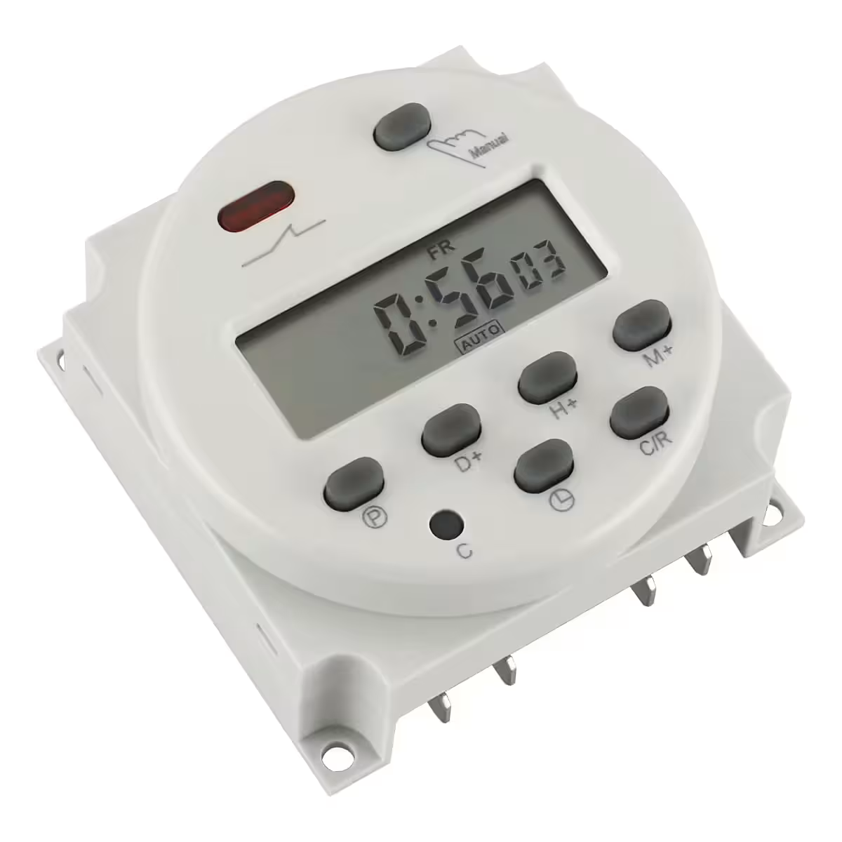 Digitalni časovnik je izdelan z moderno CMOS tehnologijo in uporablja mikrokontroler z visoko natančnim kristalom. Omogoča natančno avtomatsko časovno nastavitev za katerokoli električno napravo, z minimalnim ciklom 1 minuta in dnevnim ali tedenskim programiranjem.